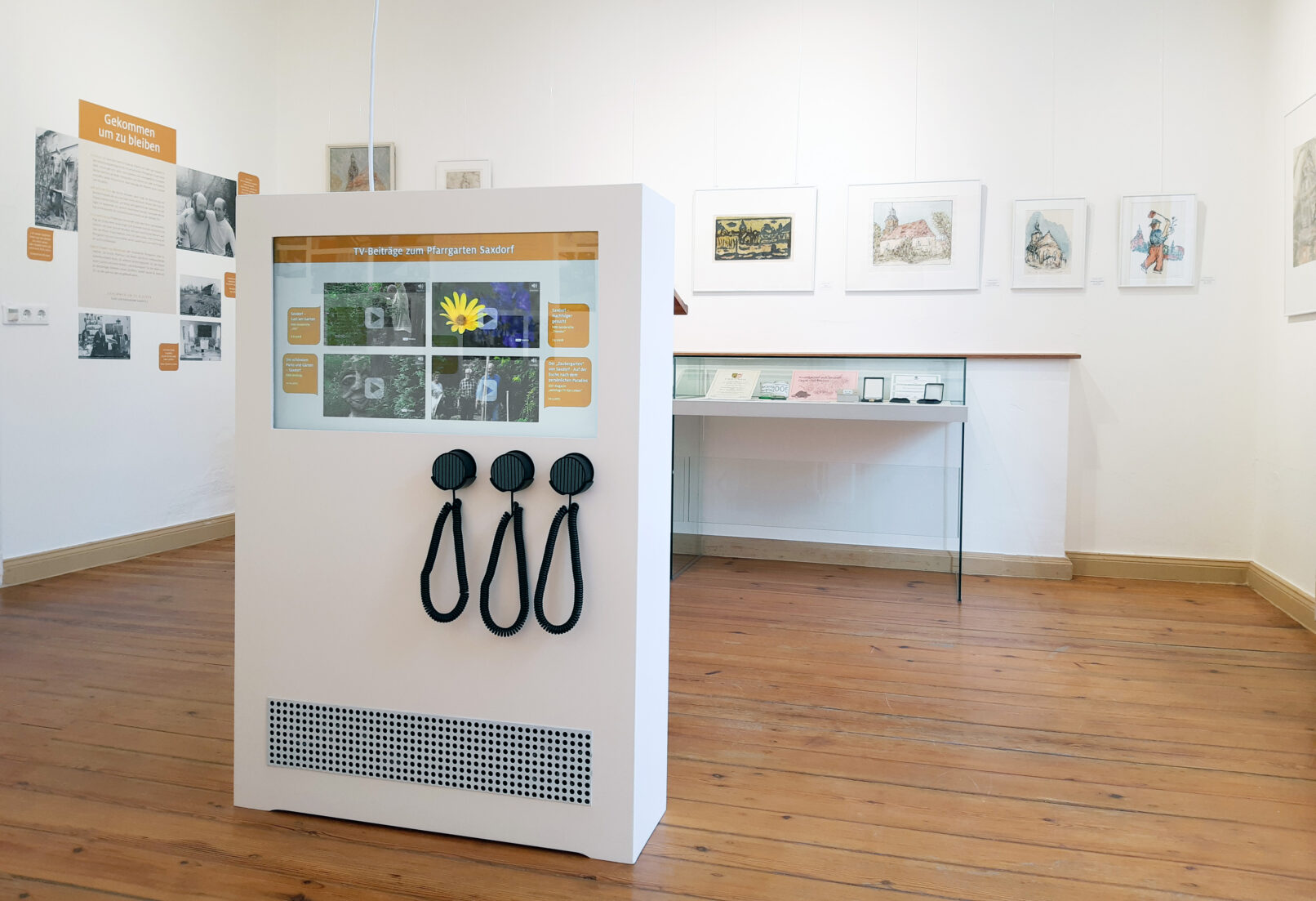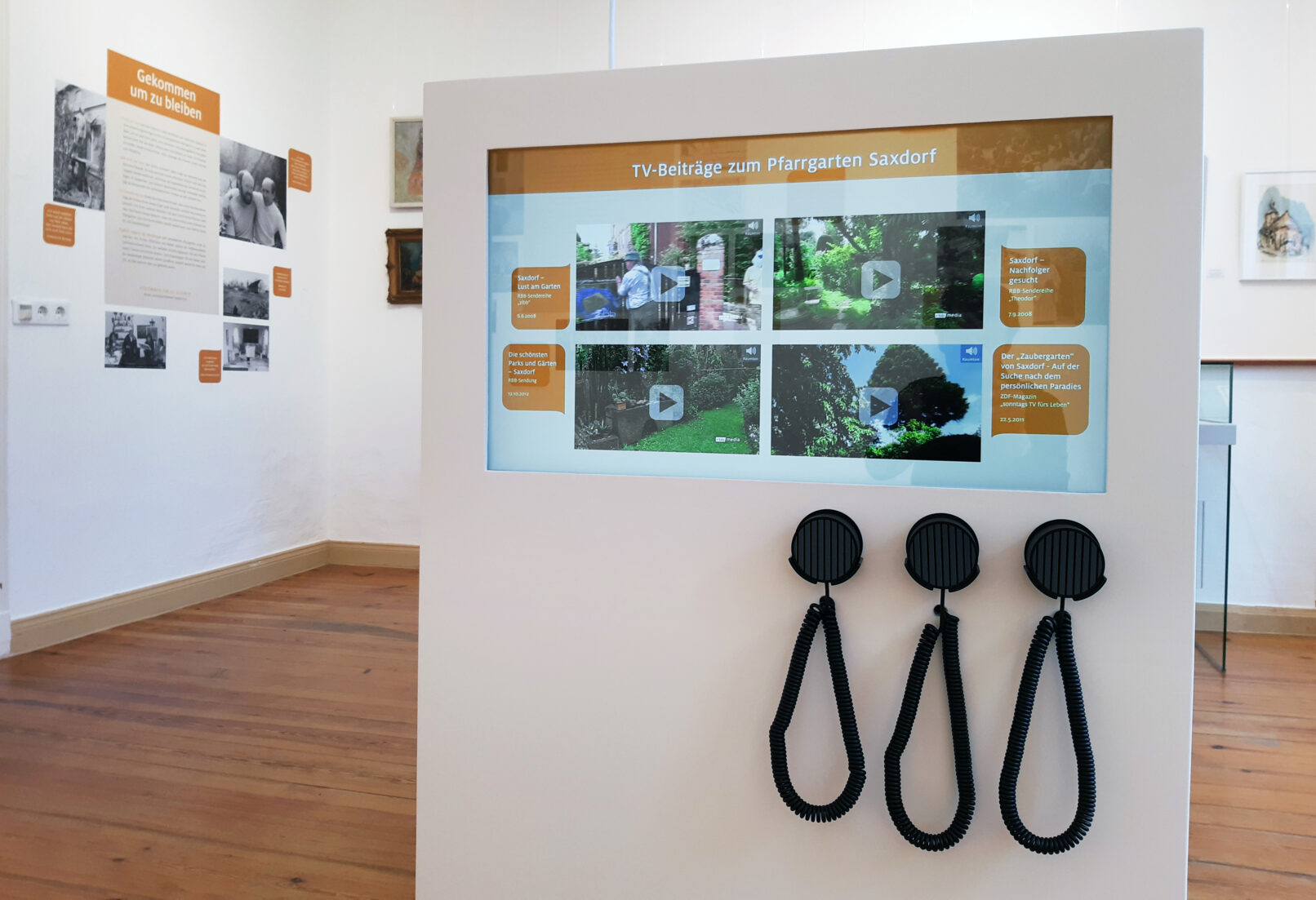 Die neue Dauerausstellung widmet sich dem Lebenswerk des Künstlers und Gartengestalters Peter Bethke sowie des Pfarrers und Konzertveranstalters Karl-Heinrich Zahn. Für die Ausstellung im Pfarrhaus Saxdorf realisierte ich eine Touchmedienstation.